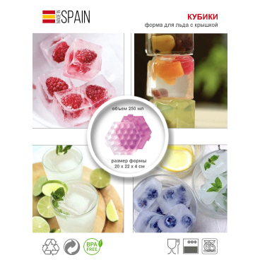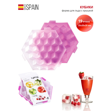 19 ячеек формы КУБИКИ просто созданы для приготовления льда с наполнителями. Положите внутрь кусочки фруктов, ягоды, цедру лимона или листик мяты, залейте водой и заморозьте. Такой лёд сделает любой напиток более изысканным.