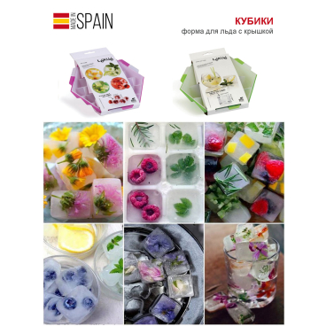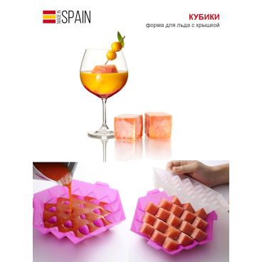 Форма выполнена из высококачественного пищевого пластика и имеет жёсткую конструкцию, поэтому кубики получаются ровными и аккуратными. Крышка защищает от протекания и от посторонних запахов. После заморозки лёд легко отделяется от формы.