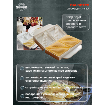 С помощью формы легко приготовить панзотти – итальянское блюдо из пресного теста в виде треугольников с фигурным обрезом края.