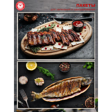 Размеры пакета позволяют запечь в них любой прибор. Большие пакеты незаменимы для приготовления молочного поросёнка, бараньей ноги, фаршированного гуся или индейки. Специальный размер удобен для запекания рыбы, свиной шейки и буженины, универсальный – для приготовления блюд из мяса и птицы, в том числе вместе с гарниром.