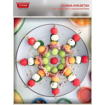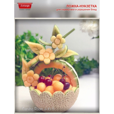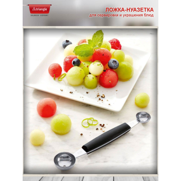 Профессиональный инструмент для оформления и декорирования блюд. Две функции в одном инструменте. Легко и быстро нарежьте овощи, фрукты, бахчевые, масло в виде шариков двух размеров. Декоративные элементы придают блюдам аппетитный и оригинальный вид. Также с помощью этого инструмента удобно готовить яблоки к запеканию, аккуратному вырезав сердцевину.