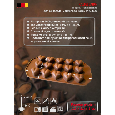 Форма-мини для заливки шоколада, карамели, мармелада или льда. Идеально подходит для приготовления конфет ручной работы. В форме также можно приготовить сахарную помадку, марципановые и желейные конфеты, порционное масло с различными наполнителями.
